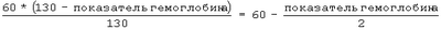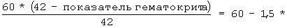 А) По гематокриту = 60-1,5*показатель гематокрита, или