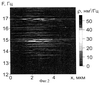 Сечение трек-диаграммы вдоль оси времени представляет собой регистограмму изменения ФТ в выбранной точке скан-линии, проведенной на изображении клетки. Пространственно-временная характеристика «событий» представляет собой совокупность регистограмм изменений ФТ в различных точках изображения клетки. Затем каждую из полученных регистограмм подвергают спектральному анализу и строят спектры флуктуации с выделением наиболее характерных спектральных компонент. Данную процедуру проводят для различных областей клетки, при этом совокупность таких спектров позволяет построить спектральный портрет. фиг.2 представляет собой спектр флуктуаций ядрышка, на котором отчетливо просматриваются компоненты с высокой локальной спектральной плотностью.