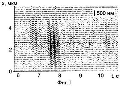 На фиг.1 представлен участок пространственно-временного портрета с сигналами в виде локальных «событий».