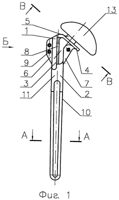 На фиг.1 изображена фронтальная проекция эндопротеза плечевого сустава, на фиг.2 сечение А-А на фиг.1, на фиг.3 вид Б на фиг.1, на фиг.4 сечение В-В на фиг.1.