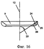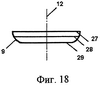 Затем формируют вторую поверхность 9 переходной зоны в виде части вогнутой внутренней поверхности второго кольцевого тороида. Поверхность 9 образуют вращением второго плоского сегмента 24 круга, обращенного выпуклостью в сторону, противоположную от оптической оси, вокруг оптической оси 12 без пересечения этой оси (Фиг.16). Дуга окружности 25 сегмента 24 опирается на хорду 26, расположенную под углом 20 к оси 12 и лежащую с осью 12 в одной плоскости (Фиг.16). Поверхность 9 в изометрической проекции приведена на Фиг.17.