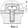 Для осуществления предлагаемого способа (фиг.1) листовую заготовку 1 укладывают на корпус 2 устройства для формовки, накрывают крышкой 3 с отверстием 4 для подачи сжатого газа и обжимают по периферии, чтобы обеспечить герметичность пространства между крышкой и заготовкой. В матрицу 5, а именно в специальные гнезда 6, выполненные в ней, предварительно устанавливают присоединяемую деталь (детали) 7, являющуюся компонентом будущего изделия 8, так, что часть ее выступает над поверхностью матрицы. Как вариант, такой деталью, показанной на фиг.3, служит винт, предназначенный для крепления готового изделия. Разность его диаметральных размеров образует конструктивный элемент удерживающего профиля в осевом направлении матрицы – поднутрение 9, а шлиц – элемент 10, удерживающий его от проворота вокруг вертикальной оси.