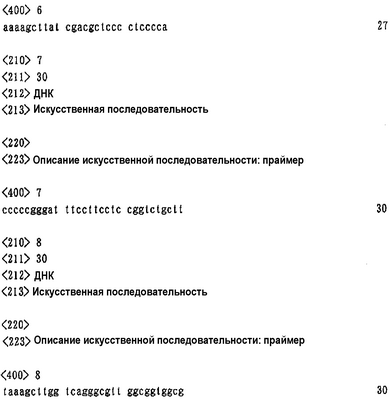 Затем полученный амплифицированный фрагмент полностью расщепляли ферментами рестрикции SalI и BamHI, лигировали с плазмидой pMW219, полностью расщепленной ферментами рестрикции SalI и BamHI, и использовали для того, чтобы трансформировать Escherichia coli JM109 (приобретенную из Takara Shuzo). Из полученных трансформантов отобрали пять штаммов клонов, содержащих фрагмент требуемого размера, и из указанных штаммов экстрагировали плазмиды.