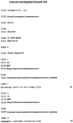 Обычно L-аминокислоты, такие как L-глутаминовая кислота, главным образом получают ферментацией, используя так называемые коринеформные бактерии, относящиеся к роду Brevibacterium, Corynebacterium или Microbacterium (“Amino Acid Fermentation”, Gakkai Shuppan Center, pp.195-215, 1986). Кроме того, для получения L-аминокислот также можно использовать микроорганизмы рода Bacillus, Streptomyces, Penicillium (патент США № 3220929), Pseudomonas, Arthrobacter, Serratia, Aerobacter, Candida (патент США № 3563857), Escherichia (выложенная заявка на выдачу патента Японии (Kokai) № 5-244970) и т.п. Кроме того, для получения L-аминокислот, таких как L-глутаминовая кислота, также можно использовать микроорганизмы, относящиеся к роду Enterobacter (EP1078989A2), Klebsiella, Erwinia или Pantoea (выложенная заявка на выдачу патента Японии № 2000-106869).