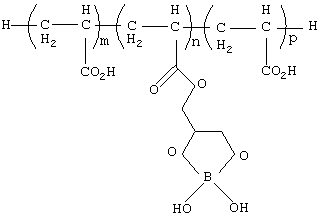 а1.2) звенья, полученные взаимодействием, после полимеризации, причем звенья содержат триметилсилановую группу и ВВ3, и возможно затем взаимодействуют со спиртом. а2) Примеры звеньев с меченым атомом также включают звенья, полученные взаимодействием после полимеризации, причем звенья являются производными от глицеринмонометилакрилата и содержат соединение бора, такое как борная кислота, бороновая кислота (реакция гидроборирования)