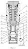 При снижении давления рабочей жидкости под действием пружины 3 ступенчатый плунжер 2 возвращается на свое место, последовательно проходя все стадии аналогичные его перемещению при открытии, но в обратном порядке. При этом обеспечивается высокая четкость работы клапана, отсутствие автоколебаний запорного органа, т.е. шарика 18, и вызванных ими вибраций и шума. Кроме того, такая конструкция предохранительного клапана обеспечивает его высокую надежность и герметичность запорного органа при работе на высоких циклических давлениях.