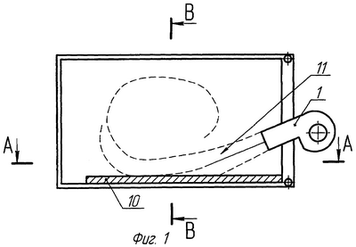 На Фиг.1 изображена схема распространения тепла, вырабатываемого горелкой.