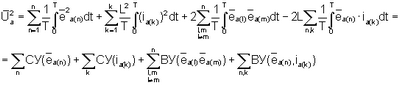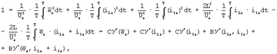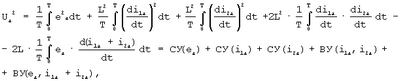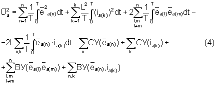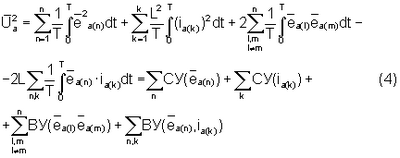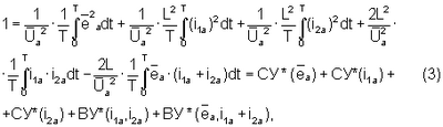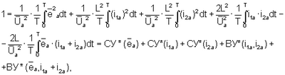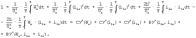 Выполнив алгебраизацию интегрального уравнения для анормальных составляющих путем сначала возведения уравнения типа (1) в квадрат и затем интегрирования его за период в соответствии с методом АДУ2 (Зиновьев Г.С. Прямые методы расчета энергетических показателей вентильных преобразователей. Новосибирск: НГУ, 1990. – с.79-85), получим следующее алгебраическое уравнение относительно действующих значений интеграла анормальных (искажающих) составляющих напряжений и токов
