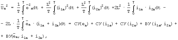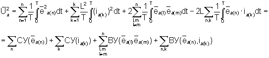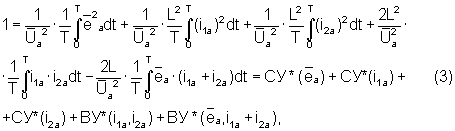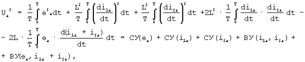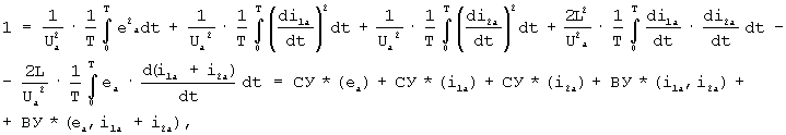 где – квадрат действующего значения интеграла анормальной составляющей напряжения узла, СУ*( ), СУ*(i1a), СУ*(i2a) – соответственно относительные значения собственных долевых участий ветви с ЭДС энергосистемы, ветвей с источниками токов нагрузки, ВУ*(i1a, i2a), ВУ*(ea, i1a+i2a) – соответственно относительные значения взаимных долевых участий пар ветвей нагрузки и ветви с ЭДС энергосистемы с ветвью результирующего тока ветвей нагрузки.