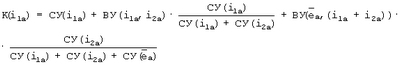 ВУ(i1a, i2a), ВУ( , i1a+i2a) – соответственно взаимные долевые участия двух ветвей нагрузок и ветви с интегралом ЭДС энергосистемы с виртуальной ветвью результирующего тока ветвей нагрузки.