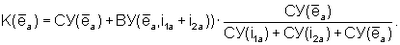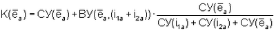 Возможно определение результирующих (с учетом собственных и взаимных долевых участий) долевых участий отдельных нагрузок K(i1a), K(i2a) и энергосистемы К(еa) в изменении качества напряжения в узле энергосистемы в общем искажении напряжения по следующим формулам