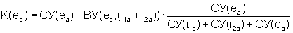 Также, способ определения долевых участий нагрузки и энергосистемы в изменении качества напряжения в узле энергосистемы действителен и для определения результирующих долевых участий (с учетом собственных и взаимных участий) отдельных нагрузок K(i1a), K(i2a) и отдельно энергосистемы K(ea) в общем искажении напряжения по следующим формулам