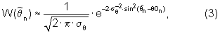 где =3,14…, 0n – истинное значение пеленга на радиопередатчик из n-й точки расположения мобильной станции радиоконтроля, – дисперсия измерений пеленга.