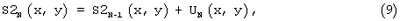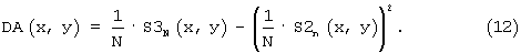 где S2N-1(х, у), S2N(х, у) и S3N-1(х, у), S3N(х, у) – соответственно результаты накопления нормированных значений амплитуды и их квадратов на предшествующем (N-1) и текущем (N) периоде измерения для точки пространства с координатами (х, у).