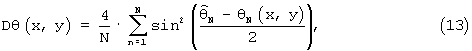 – дисперсию разностей измеренных и расчетных значений пеленга определяют с учетом циклического характера этих величин как учетверенное среднее арифметическое значение квадрата синуса их половинных значений.