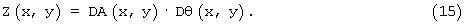 В умножителе 9 дисперсии (13), (14) для каждой точки пространства перемножают с получением функции пространственной неопределенности вида