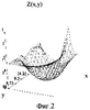 Пример такой функции пространственной неопределенности приведен на фиг.2, ее минимум находится в окрестности истинных координат радиопередатчика. Для определения местоположения радиопередатчика на заключительной стадии в блоке 10 определяют положение минимума функции пространственной неопределенности (произведения оценки дисперсии нормированных значений амплитуды на оценку дисперсии разности измеренных и расчетных значений пеленга), то есть такую точку, в которой