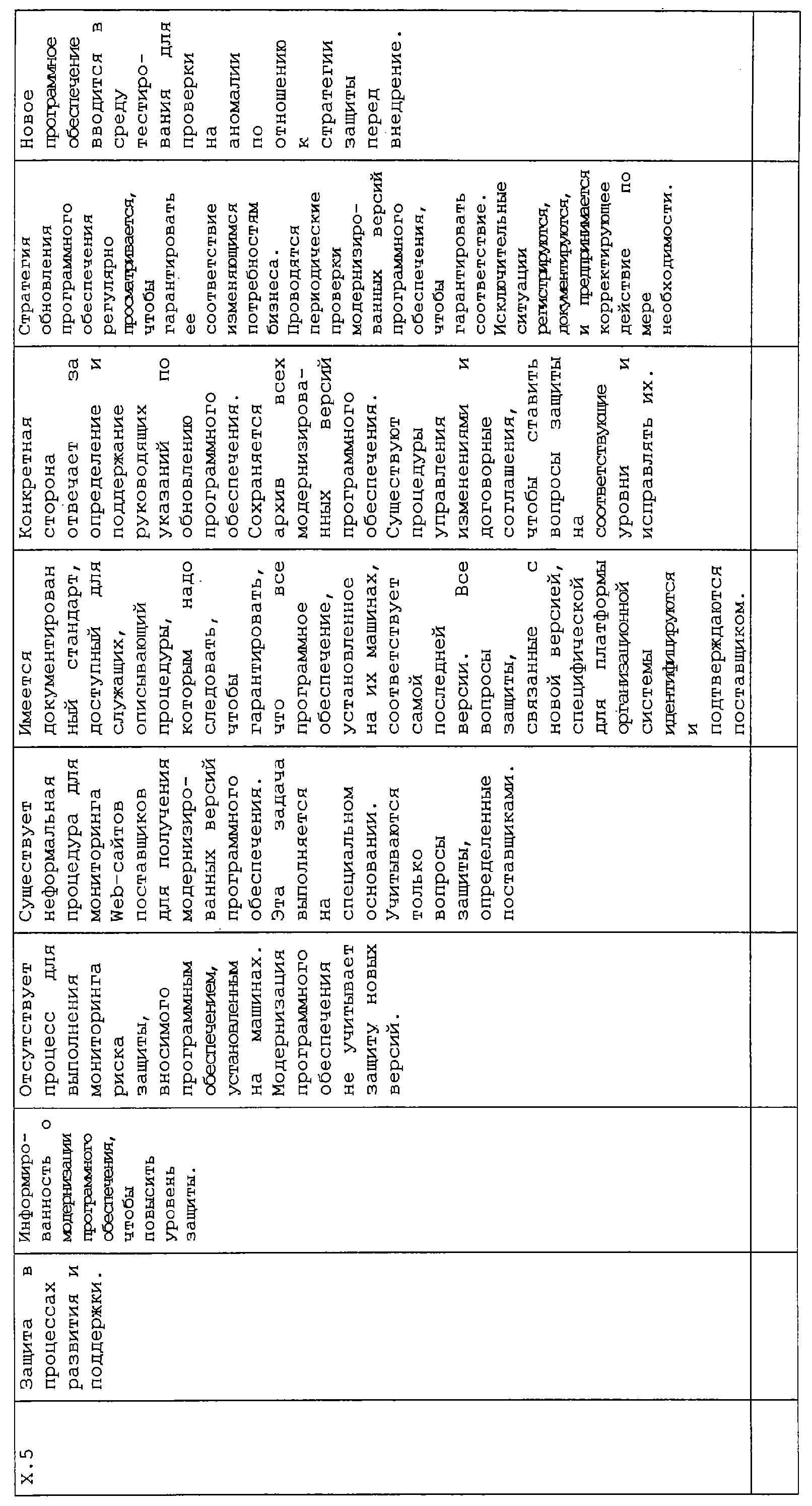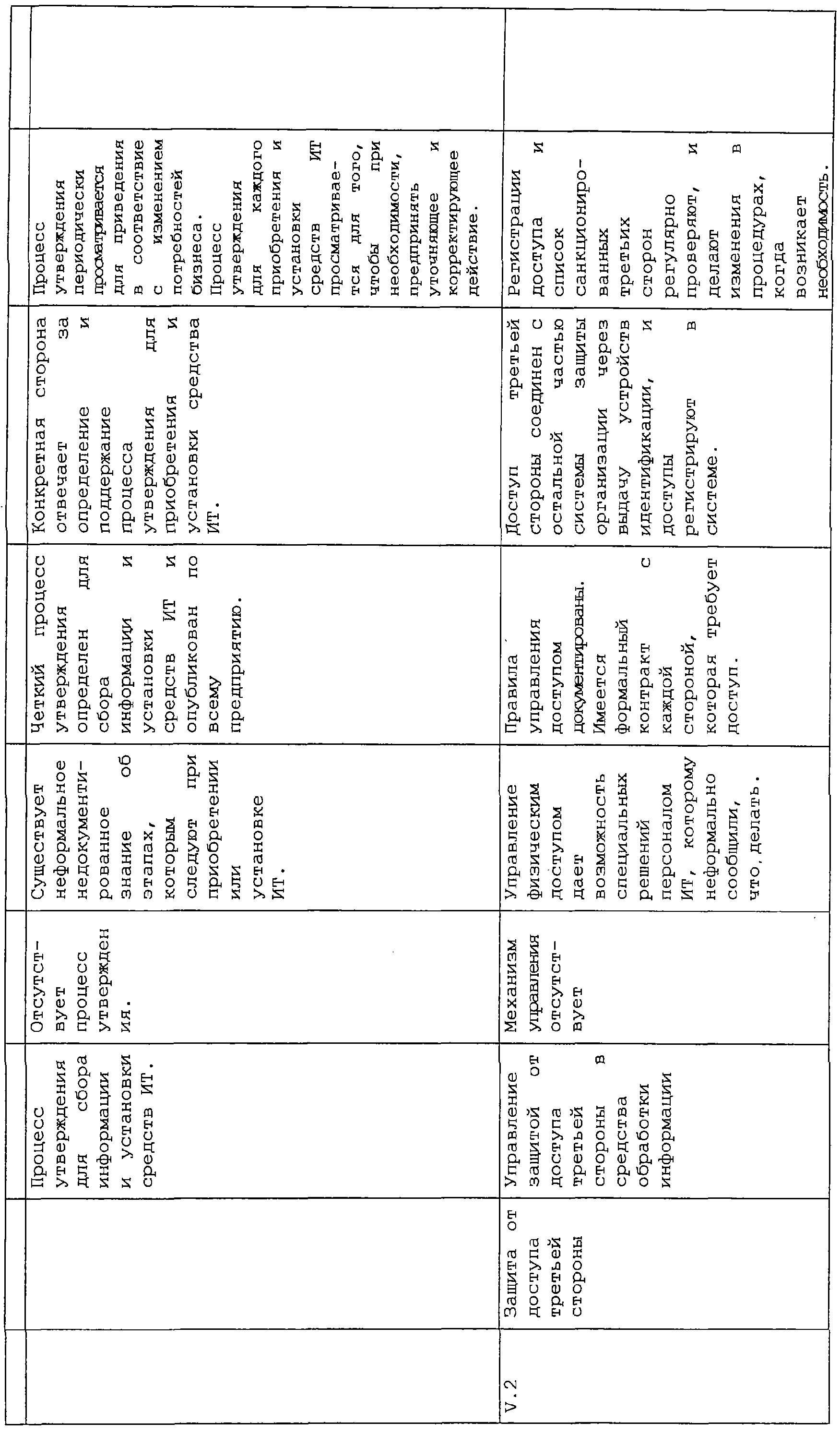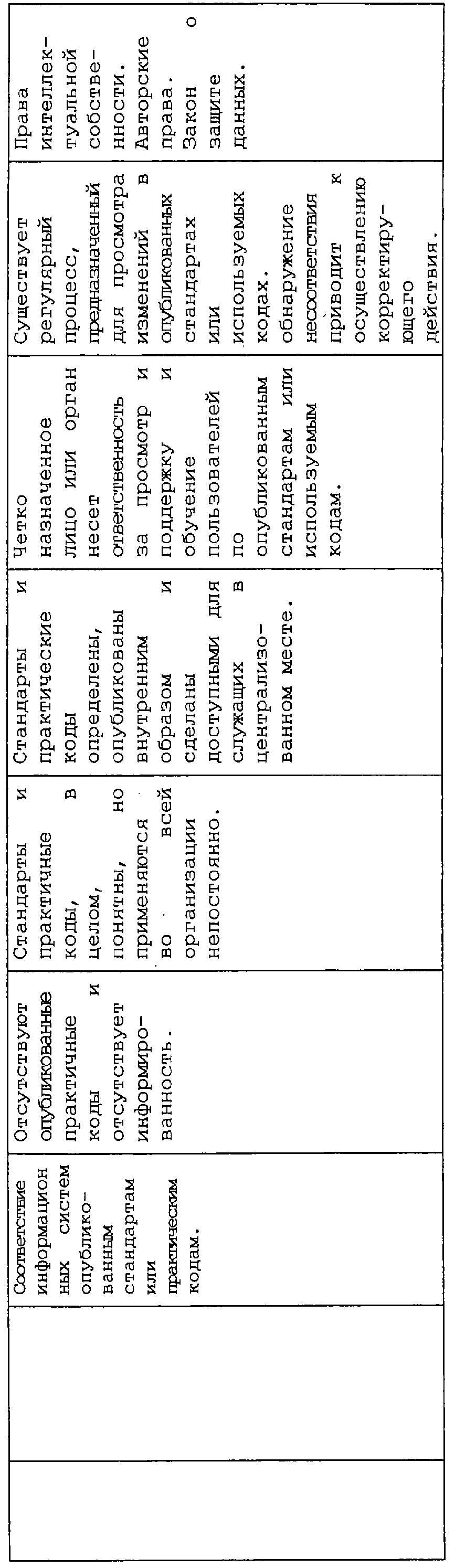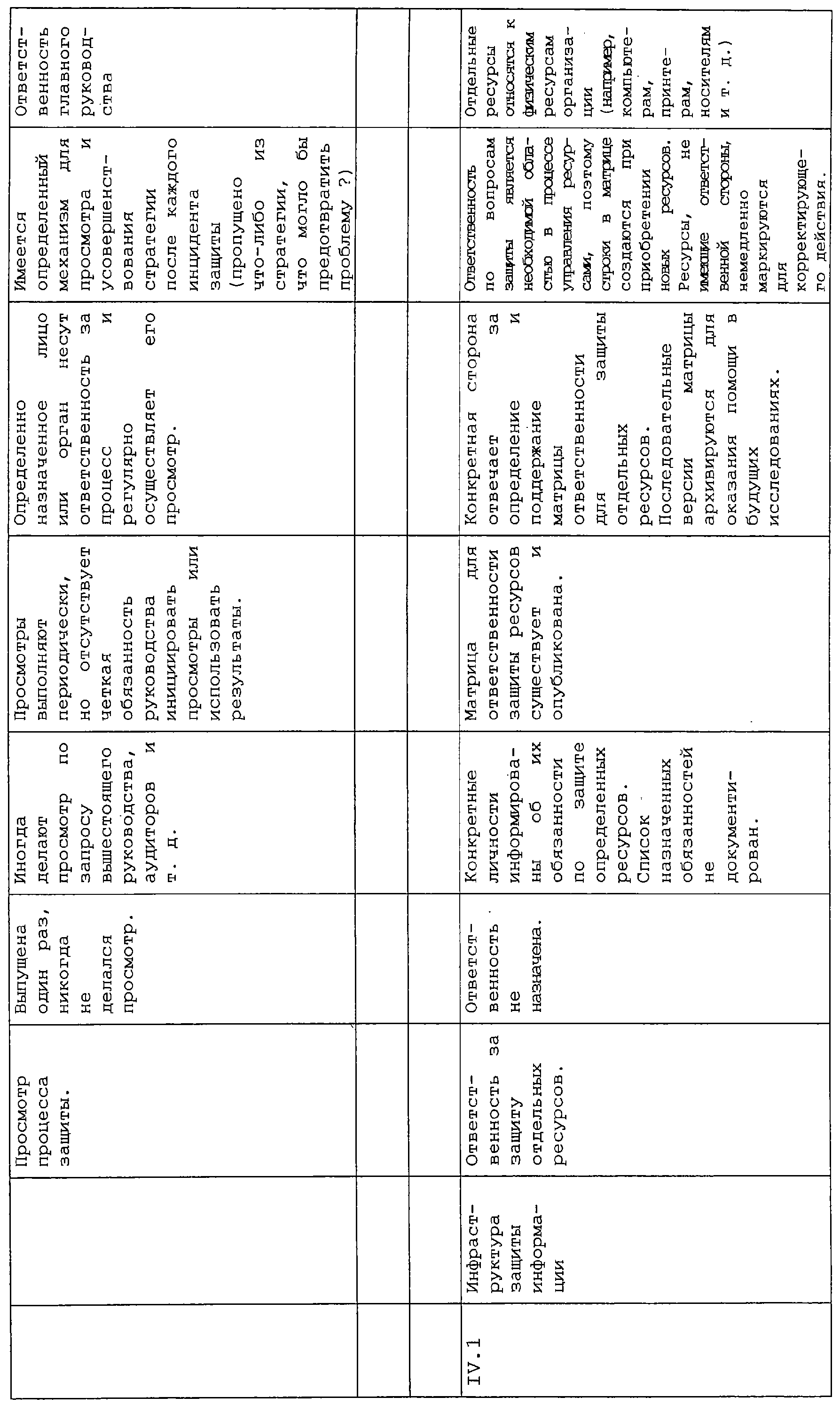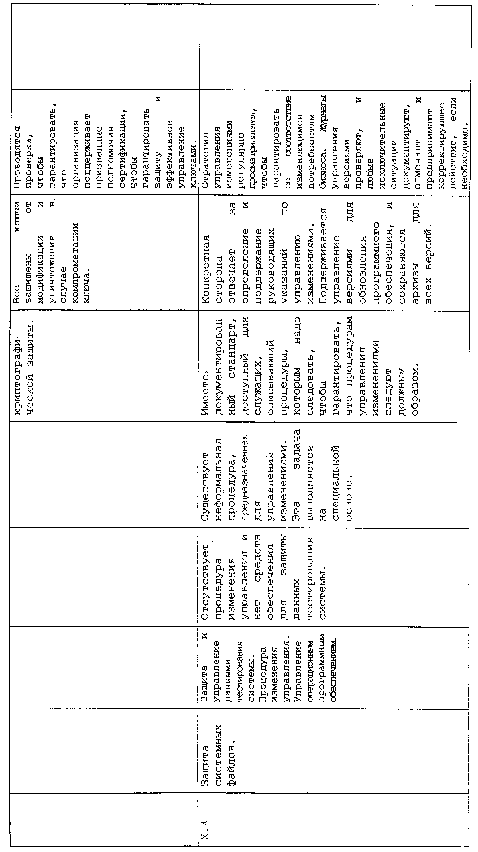 Изобретение относится к способу, предназначенному для оценки зрелости защиты организации. Кроме того, изобретение относится к способу, предназначенному для оценки зрелости защиты организации с использованием матрицы оценки защиты. Кроме того, изобретение предусматривает, что матрица оценки защиты основывается на стандарте BS7799/ISO17799 и Модели Зрелости Возможностей (модели СММ). Кроме того, изобретение относится к способу обеспечения количественных, ориентированных на действия результатов с использованием матрицы оценки защиты. Кроме того, изобретение относится к способу, предусматривающему сравнение зрелости защиты организации с заранее определенной целью, или со зрелостью защиты той же самой организации в другой момент времени, или с уровнем зрелости защиты, заданной другой организацией или администрацией.