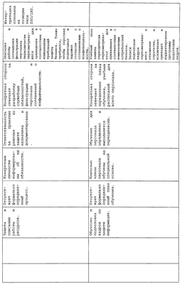 Например, на фиг.3 категория 2 содержит четыре элемента: элемент D (2), элемент Е (4), элемент (F) и элемент G (8). Более конкретно для элемента G (8), ОЗВ (16) находится на уровне 2 (22), в то время как цель (18) находится на уровне 3 (24). Следовательно, имеется расхождение (20) между уровнем 2 (22) и уровнем 3 (24) в строке, содержащей элемент G(8). Следовательно, организация может легко увидеть, что элемент G (8) находится ниже цели (18). В противоположность этому организация может легко видеть, что уровень зрелости возможности для элемента F (6) соответствует цели (26), установленной для этого элемента, таким образом, для пункта F (6) отсутствует расхождение.