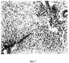 На срезах печени, окрашенных гематоксилин-эозином и пикрофуксином по ван Гизону, прежде всего, обращают на себя внимание разной величины скопления лимфо- и гранулоцитов в различных участках органа, что практически отсутствует в контроле. Среди указанных клеток нередко встречаются макрофаги, в цитоплазме которых видны множественные интенсивно окрашенные буро-коричневые гранулы, равномерно распределенные по перикариону. В междольковой соединительной ткани выявляются триады, вокруг которых имеют место явления отека неодинаковой степени выраженности. Около желчных протоков и артерий отмечается лейкоцитарная реакция (фиг.6). Вены, как правило, расширены, иногда значительно; в части их наблюдается стаз.
