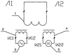 Она содержит многообмоточный трансформатор тока, первичная обмотка 1 которого замкнута накоротко, одна вторичная обмотка 2 подключена к источнику переменного тока 3, а другая вторичная обмотка 4 подключена к источнику постоянного тока 5.