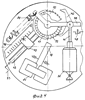 На левый конец вала 35 и втулку 36 как на ось свободно надет поводок 38, к одному концу которого прицеплена пружина 39, а на другом имеется переключаемая собачка 40. К этому же концу присоединена тяга 41 от якоря электромагнита 52.