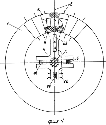 На фиг.1 изображен поперечный разрез электромагнитного переключателя (далее переключатель), где показан статор 1, собранный из контактных блоков 2 и вильчатой гайки 4.