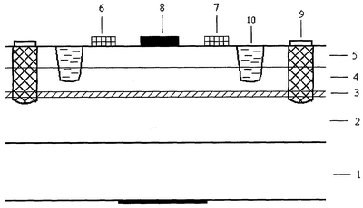 6, 7 – два омических контакта, расположенных на легированном слое 5;