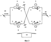 Работа магниторезистивного датчика по схеме, изображенной на фиг.2, аналогична работе схемы (фиг.1), рассмотренной выше.