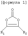 Соединения формулы 1 могут включать в себя виниленкарбонат (VC), сложные метиловые эфиры и т.п., но не ограничиваются ими. Соединения формул 2-4 могут включать в себя пропансультон (PS), пропенсультон, диметилсульфон, дифенилсульфон, дивинилсульфон, метансульфоновую кислоту и т.п., но не ограничиваются ими.