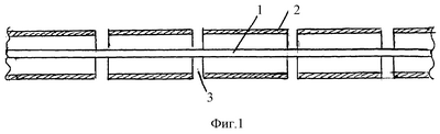 На фиг.1 показан кабель с коаксиальным слоем, помещенный в трубу.