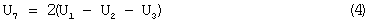 Напряжение на нагрузке 7 (фиг.1) равно сумме напряжений U5 и U6: