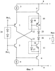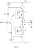 Токовые зеркала 10 и 11 (фиг.4, фиг.5) содержат выходные n-p-n 16 и входные n-p-n 17 транзисторы (фиг.4), а также выходные p-n-p 18 и входные p-n-p 19 (фиг.5) транзисторы, причем эмиттеры входных и выходных транзисторов каждого из токовых зеркал 10 и 11 соединены друг с другом, а база и коллектор входного транзистора соединена с базой выходного транзистора и управляющим токовым входом токового зеркала (12, 13).