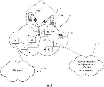Сеть 1 мобильной телефонной связи подсоединена к коммутируемой телефонной сети 7 общего пользования посредством шлюзового коммутирующего центра 8.