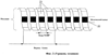 Фиг.3 показывает в первом ряду 19 временных интервалов нисходящей линии связи, а во втором ряду 19 временных интервалов восходящей линии связи следующих друг за другом кадров МДВР. Временные интервалы, используемые мобильным терминалом многоинтервального класса 4 в нисходящей линии связи и в восходящей линии связи, обозначены на Фиг.3 штриховкой. Как можно видеть, мобильный терминал выполнен с возможностью приема в 3 последовательных временных интервалах 3-5 в нисходящей линии связи и передачи в одном временном интервале 4 в восходящей линии связи. Из-за сдвига в нумерации временных интервалов в нисходящей линии связи и в восходящей линии связи всегда существует свободное время по меньшей мере в одном временном интервале для изменения с приема на передачу и наоборот.