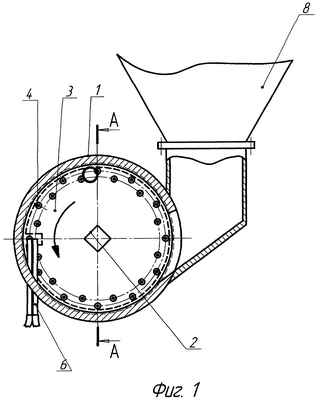 На фиг.1 изображена схема пневматического высевающего аппарата, вид сбоку; на фиг.2 – схема пневматического высевающего аппарата, разрез А-А на фиг.1.