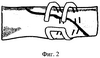 Известно технологически простое и, при корректном выборе тактики операции, достаточно эффективное устройство для остеосинтеза [Медицинские материалы и имплантаты с памятью формы. Изд. Томского университета, Томск, 1998, рис.4.54], выбранное по наибольшему сходству в качестве прототипа предлагаемого изобретения. Оно содержит продолговатый остов, образованный двумя свитыми в жгут проволоками из никелида титана (фиг.4) со встречно подогнутыми концами – ножками для внутрикостной фиксации. На длине остова выполнены полуволновые изгибы каждой проволоки, локально совмещенные и оппозитно направленные, образующие, таким образом, петли. Плоскости петель ориентированы ортогонально плоскости устройства и служат вместе с остовом накостной опорой устройства. Другая функция петель – создание компрессии в зоне перелома. Для этого охлажденное устройство деформируют продольным растяжением петель, накладывают на перелом транскортикальным внедрением ножек и оставляют для нагрева и срабатывания эффекта термодинамического восстановления исходной формы.