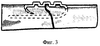 При переломах трубчатых костей с короткой плоскостью излома используют устройство с интрамедуллярным фиксатором [Медицинские материалы и имплантаты с памятью формы. Изд. Томского университета, Томск, 1998, с.234]. Компрессию сомкнутых отломков осуществляет действием эффекта памяти формы меандрообразный участок скобы (фиг.3), которую внедряют в кость встречно подогнутыми ножками. Одна ножка значительно удлинена и, будучи расположена внутри кости вдоль нее, служит фиксатором для предотвращения соскальзывания отломков. Таким образом, в устройстве сочетаются акции фиксации и компрессии. Недостатком является возможная миграция интрамедуллярной ножки, т.е. ненадежность фиксации соскальзывающих отломков.