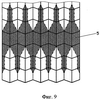 Операции зеркального отображения, изменения направления выдавливания и исключения рифтов, попавших за пределы пилообразных линий, продолжаются до тех пор, пока все отображаемые рифты не окажутся за пределами пилообразных линий. Затем все рифты, лежащие между пилообразными линиями, зеркально отображаются относительно пилообразной линии 3 (фиг.11). Полученная многоугольная зона, содержащая сопрягаемые рифты, является элементарным модулем зоны сопряжения рифтозадающей грани. Он распространяется в направлении зигзагообразной линии на всю длину гофра и формирует зону сопряжения грани (фиг.9).
