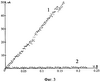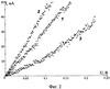 На фиг.3 представлено семейство ВАХ двух устойчивых состояния молекулярного канала: 1 – «включенное»; 2 – «выключенное».