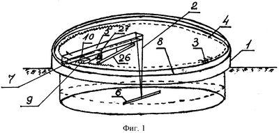 Однако в технологическом процессе очистки сточных вод всегда имеет место отстаивание сточных вод в резервуарах, где поток отсутствует или имеет минимальную скорость, которая не позволяет использовать агрегаты, подобные описанному выше, для очистки от загрязнений и обрастателей надиловой жидкости, а также конструктивных элементов очистных сооружений.