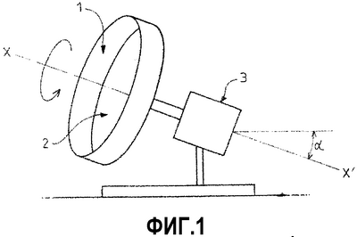 Галтовка может осуществляться, например, в полом барабане, вращающемся вокруг своей оси вращения. Поперечное сечение барабана может быть цилиндрическим или может иметь другую подходящую форму, например многоугольную, как, например, шестиугольную форму. Ось вращения предпочтительно наклонена к горизонтали под углом в пределах от 0 до 45°. Такой барабан изображен на фиг.1. Этот барабан содержит цилиндрическую стенку 1 и торцевую стенку 2. В варианте на фиг.1 барабан является не очень глубоким (по сравнению с его диаметром) и мог быть также назван чашей. Этот барабан имеет свою ось вращения XX’, образующую угол альфа с горизонталью. Этот барабан может быть выполнен для вращения вокруг своей оси вращения двигателем 3. Рубленая пряжа и другие ингредиенты смеси подлежат помещению в барабан. Как можно видеть, пряжа подвергается галтовке и следует по траектории, показанной пунктирными стрелками на фиг.2, на которой барабан, содержащий цилиндрическую стенку 1 и торцевую стенку 2, изображен на виде в направлении его оси вращения. В этом варианте можно как изменять, так и не изменять частоту галтовки во время перемешивания. Однако даже если частота изменяется во время перемешивания, то, как очевидно, в каждый момент времени частота галтовки является одинаковой для всей рубленой пряжи и таблеток, содержащихся в смесителе в то же самое время.