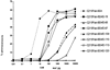 На фиг.7 представлен сцинтилляционный анализ близкого расстояния (SPA), который использовали для измерения специфичного связывания меченного 125I человеческого антитела против SEA, связанного с C215FabSEA, C215FabSEA/E-18, -65, -97, -109, -110, -113 или -120, с анти-мышиным F(ab)2, конъюгированным с биотином, на стрептавидиновых PVT-шариках.