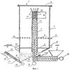 Для подачи сырья в устройстве для загрузки сырья включают шнеки 13а и 13б приводами 14. Сырье перемещается по транспортному каналу 11 снизу вверх и посредством устройства 12 распределяется по площади внутри камеры 1 в зоне питания.