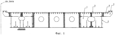 На фиг.1 изображено основное пролетное строение, поперечное сечение.