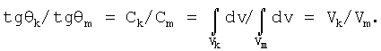 Для вычисления соотношения запасов различных участков месторождения находят угловые коэффициенты графиков 1, построенных для разных участков, а затем их отношения, которые равны отношению объемов газа на этих участках. Например, для двух участков k и m отношения угловых коэффициентов пересчитывают в соотношение объемов: