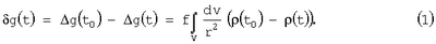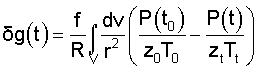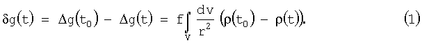 При газовом режиме объем порового пространства, занимаемого газом в пласте, не изменяется, за счет отбора уменьшается только его масса, что приводит к уменьшению первоначальной плотности газа. Поэтому аналитические выражения для силы тяжести, полученные при первом цикле наблюдений (в момент времени t0) и в какой-либо последующий момент времени t, будут иметь сходный вид:
