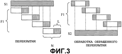 Фиг.3 – схема, иллюстрирующая принцип обработки сигнала с перекрытием и обращенным перекрытием согласно изобретению.