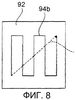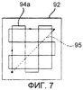 Более конкретно, четвертый этап очистки содержит два этапа движения, состоящих из движения робота-уборщика по зигзагообразному маршруту 94а, включающему в себя четыре первых маршрута, расположенных параллельно друг другу на заданном расстоянии так, чтобы текущее очищаемое пространство не перекрывалось с ранее очищенным пространством, или перекрытие между текущим очищаемым пространством и ранее очищенным пространством было минимальным, тогда как внутренняя область предназначенной ячейки 92 была полностью очищена; и три вторых маршрута, соединяющих между собой смежные первые маршруты на минимальном расстоянии так, чтобы робот-уборщик непрерывно двигался по первым маршрутам, при этом первые маршруты не перекрываются друг с другом. В этом случае первые маршруты одного из этапов движения перпендикулярны первым маршрутам другого этапа движения.