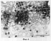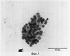 Пациентка К., 1934 г.р. с д-зом: Узловой коллоидный зоб. По данным пальпаторного исследования, согласующегося с сонографическим контролем, узел в области перешейка щитовидной железы размером около 2 см в диаметре. По цитограмме – узловой коллоидный зоб с признаками дистрофических изменений (вид аналогочен фиг.1). Гормональный статус поддерживается в норме небольшими дозами тиреоидных препаратов на протяжении последних 5 лет. По известной методике проведен сеанс лазерного лечения и контроль его эффективности. Через 21 день на фоне отсутствия клинических признаков воспаления в пунктате не обнаружены многоядерные гистиоциты и данные реактивного изменения соединительной ткани (картина аналогична фиг.1). Проведен повторный сеанс. Через 2 недели в пунктате отражались признаки лазериндуцированного воспаления (фиг.2 и фиг.3). На сроке 4,5 месяцев имелись признаки реактивного изменения тиреоидного эпителия (фиг.4). Через 7 месяцев из остаточного объема, составляющего по сонографическим данным 10% от начального изменения, произведено взятие цитологического материала и отмечено наличие регенерации (фиг.6). Пациентка обследована спустя 1,5 года. Данных за патологию щитовидной железы не получено. Гормональный фон в пределах физиологической нормы без применения тиреоидных препаратов. Лечение прошло успешно.